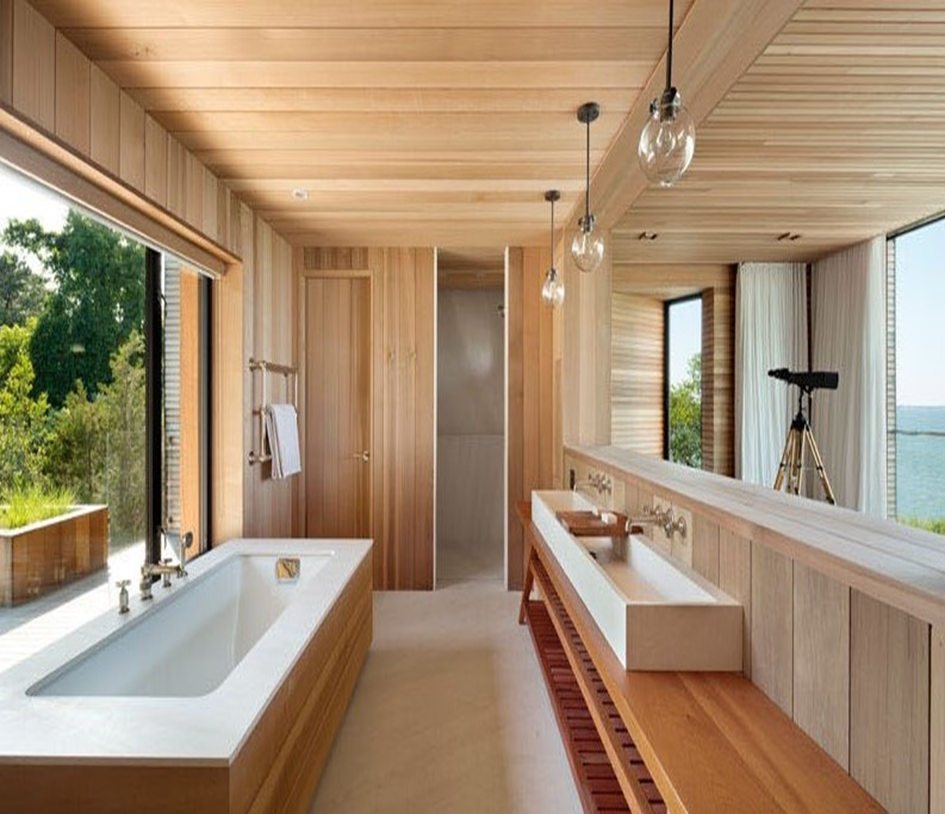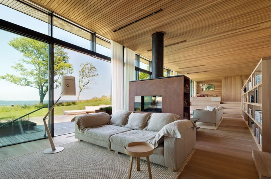 Located in the Hamptons and built on a large estate, this structure has a design that will amaze you at first glance. The details of the house are; is full of excitement. Covered with plane trees, the building is located on the beach. For this reason, it is aimed to make maximum use of the view while deciding on the design of the house.