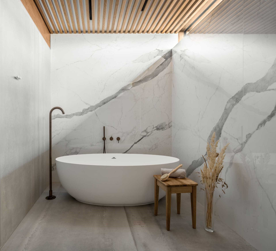 In the bathroom design, the common texture of the house was followed.